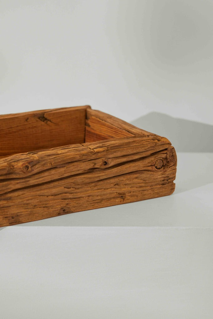 Introducing our exquisitely crafted Teak Storage Trays, where functionality meets timeless beauty. These gracefully weathered trays have a rich history, having served as vessels for transporting grains and spices to bustling village markets or as cherished storage solutions within the homes of Rajasthan.