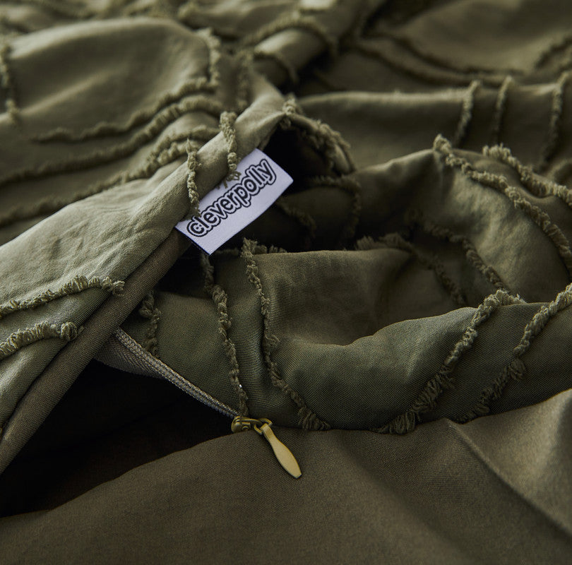 Tufted ultra soft microfiber quilt cover set-queen khaiki green