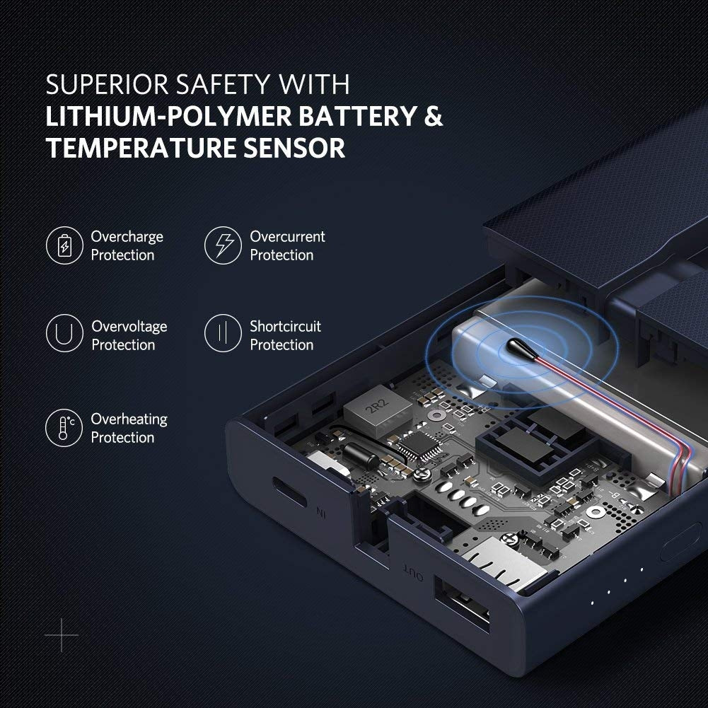 Pass-through Charging with Fast Recharge: The USB C port can input 5V/2.4A, 9V/2A,making it be charged fully within 3.5 hours when working with Quick Charge wall charger. It is also support past-through charging, you can play your devices when it is charging without the worry about power drain. Waiting Less, Having more fun.