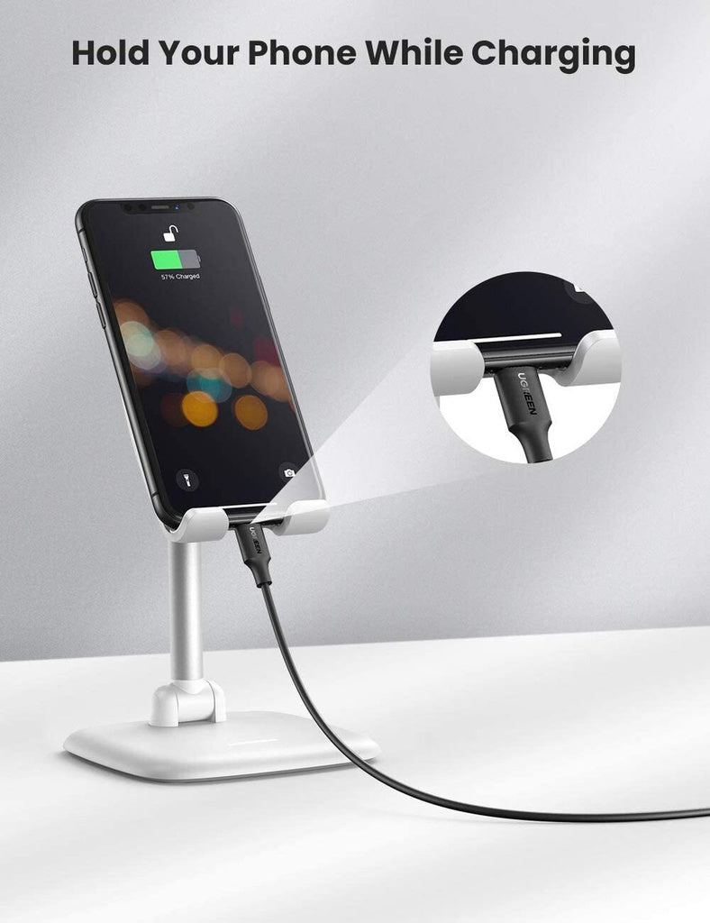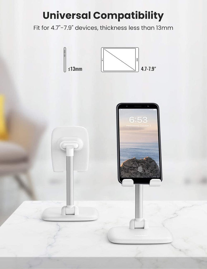 Simply adjust and choose your preferred viewing angles from 5° to 60°. UGREEN desk phone holder stand holds your smartphone or mini tablet at a comfortable angle, ideal for watching the video, reading, video recording, browsing the web, playing games, or facetime call.