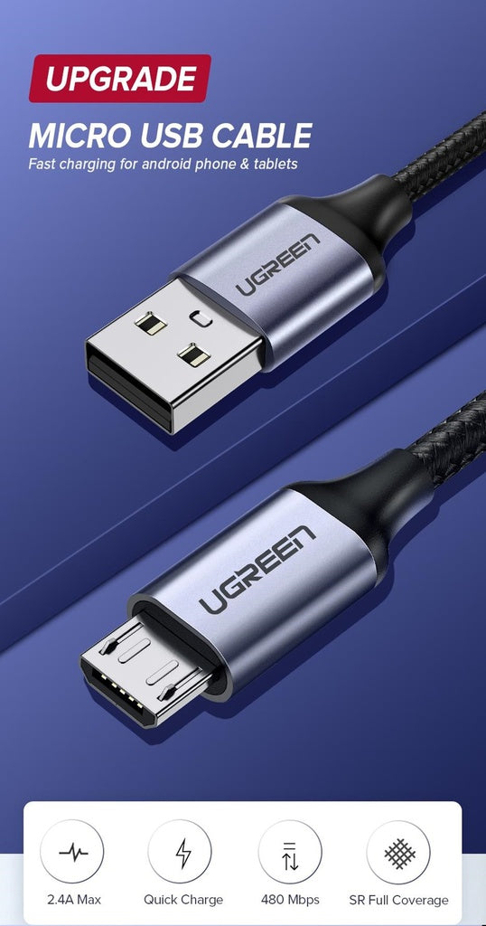 Ugreen micro USB cable supports Quick Charge technology, greatly save charging time for you. For QC 3.0/2.0 enabled devices, output up to max 18W (12V/1.5A 9V/2A 5V/2A); for standard Non-QC 3.0/2.0 devices, output up to max 5V/2A.