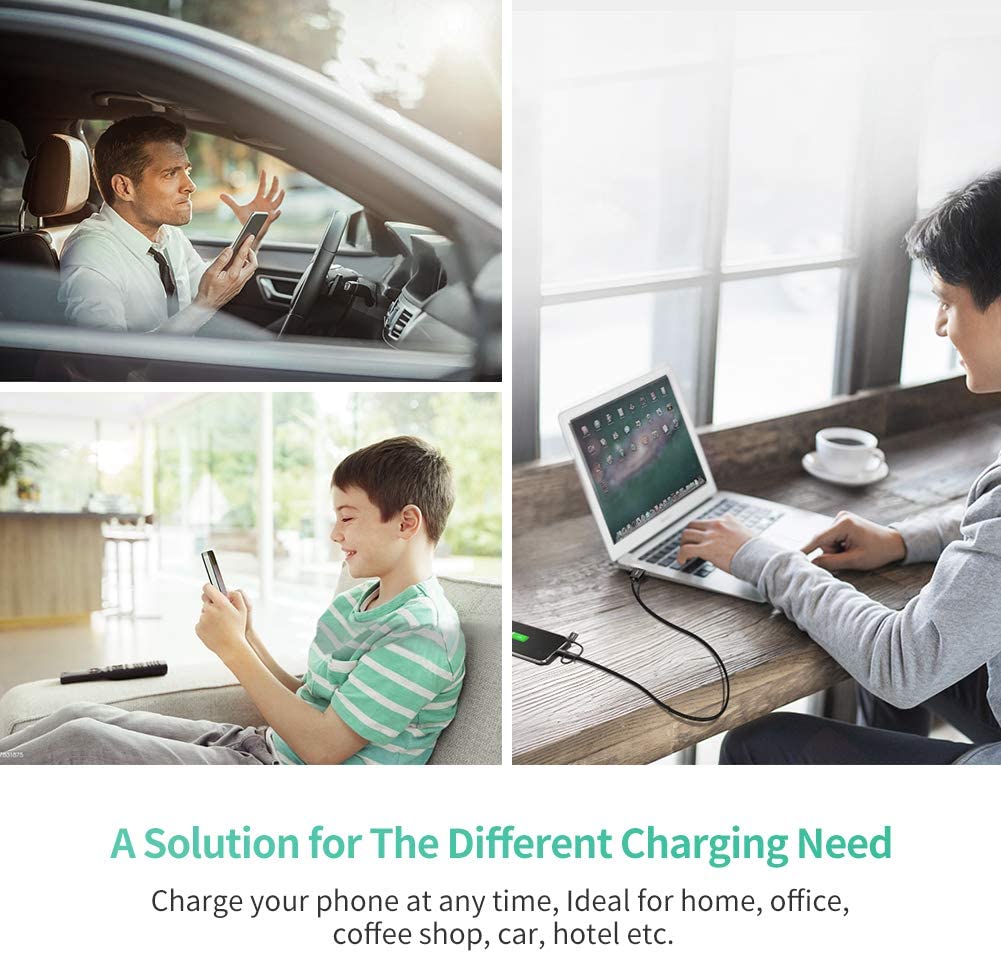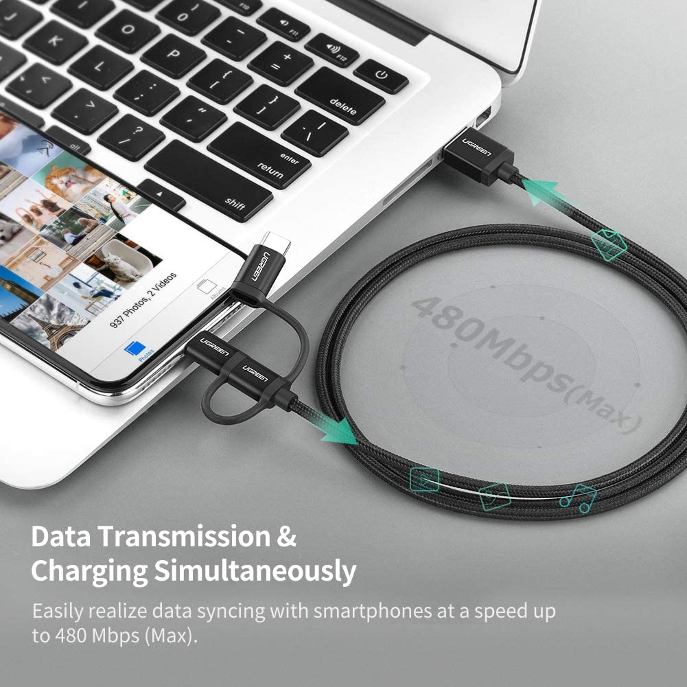 UGREEN 3 in 1 USB Cable (3ft) is the most convenient solution for people with multiple devices with different ports. By switching the connectors between connector, Micro USB connector and USB Type C connector, you don't have to carry 3 different types of cables on a daily basis