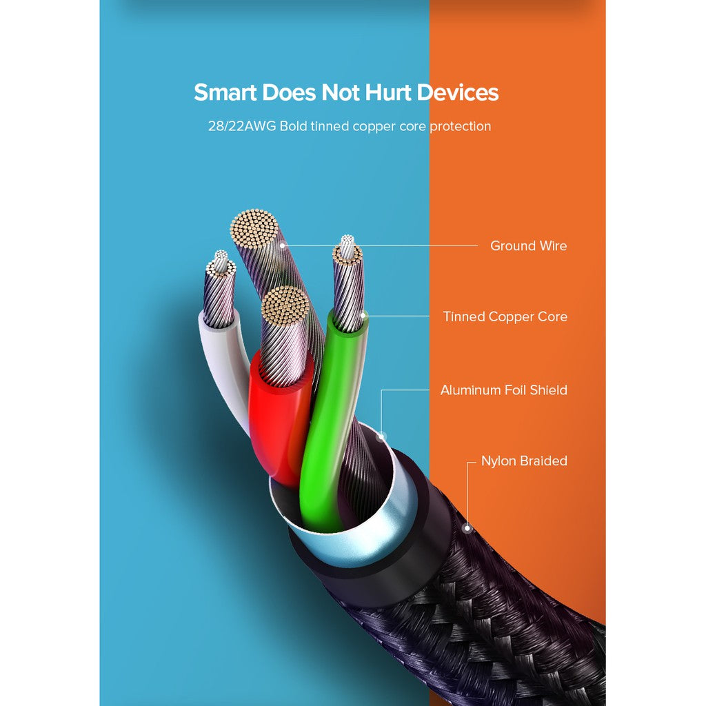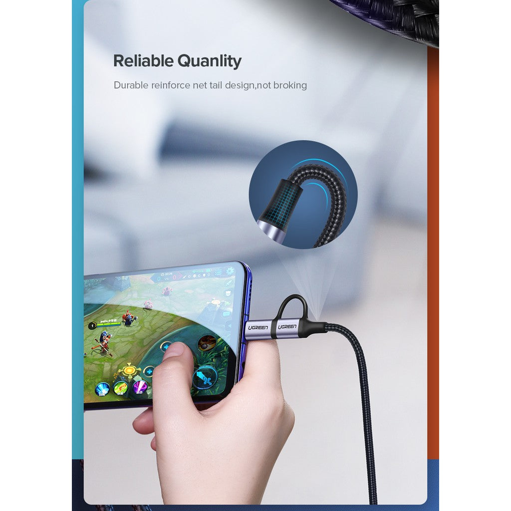 UGREEN 2 in 1 USB to Micro USB or USB-C Fast Data Sync Charging Cable 1m Black