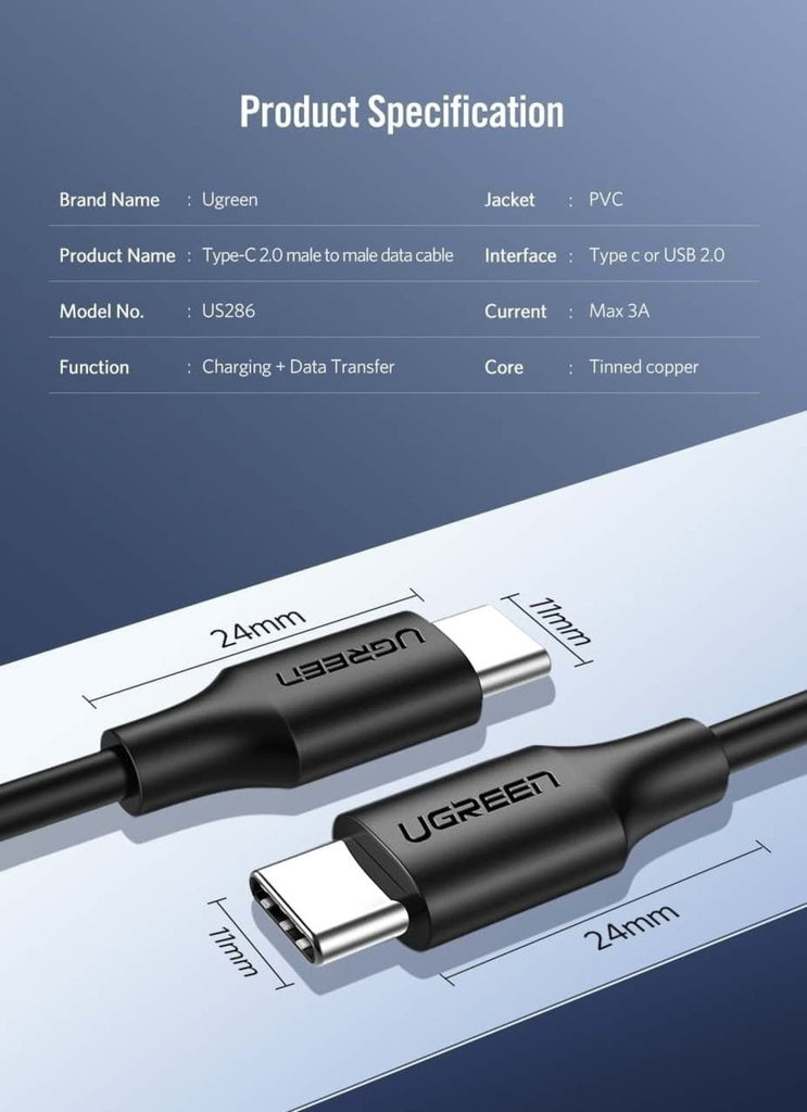 The UGREEN series of USB-C fast charging cable ensures safe charging at up to 3A for your USB Type-C smartphones, tablets, and laptops. Support data transfer rate up to 480 Mbps. QC4.0 / 3.0, and safe with its built-in charging intelligence chip.