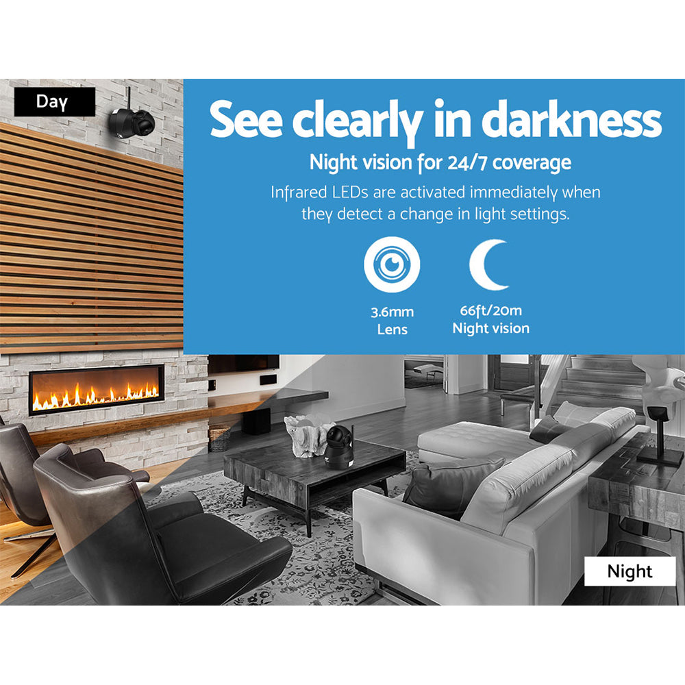 These include HD 2.0 megapixel 1080 resolution, clear day and night vision, smooth pan and tilt monitoring, and P2P remote access support. Motion detection can be customised and with the free apps, you can also view the pictures on your phone or computer. Not least, the Camera also has data protection during power outages and up to 128G recording on a TF card for easy playback. Set up is simply plug and play with a Wi-Fi connection and your purchase comes with all the necessary accessories.