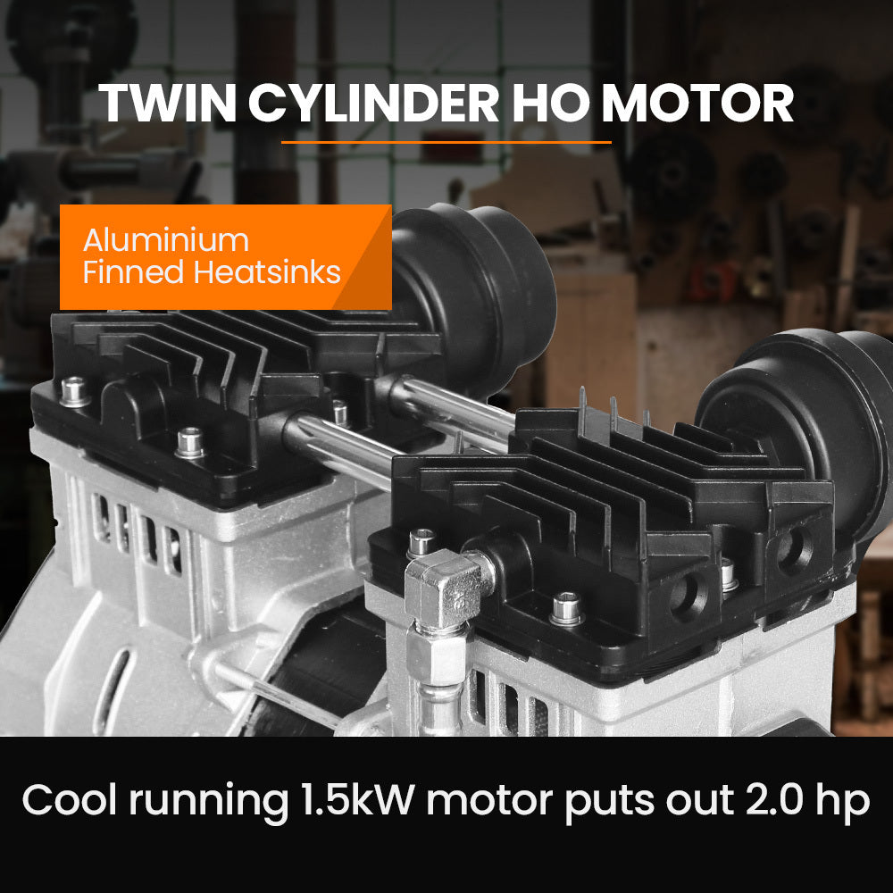 This ACM-400s Oil-Free Air Compressor is powered by a twin-cylinder 1.5kw motor which is equivalent to a total output of 2.0HP— up to 40% more than comparable models on the market!