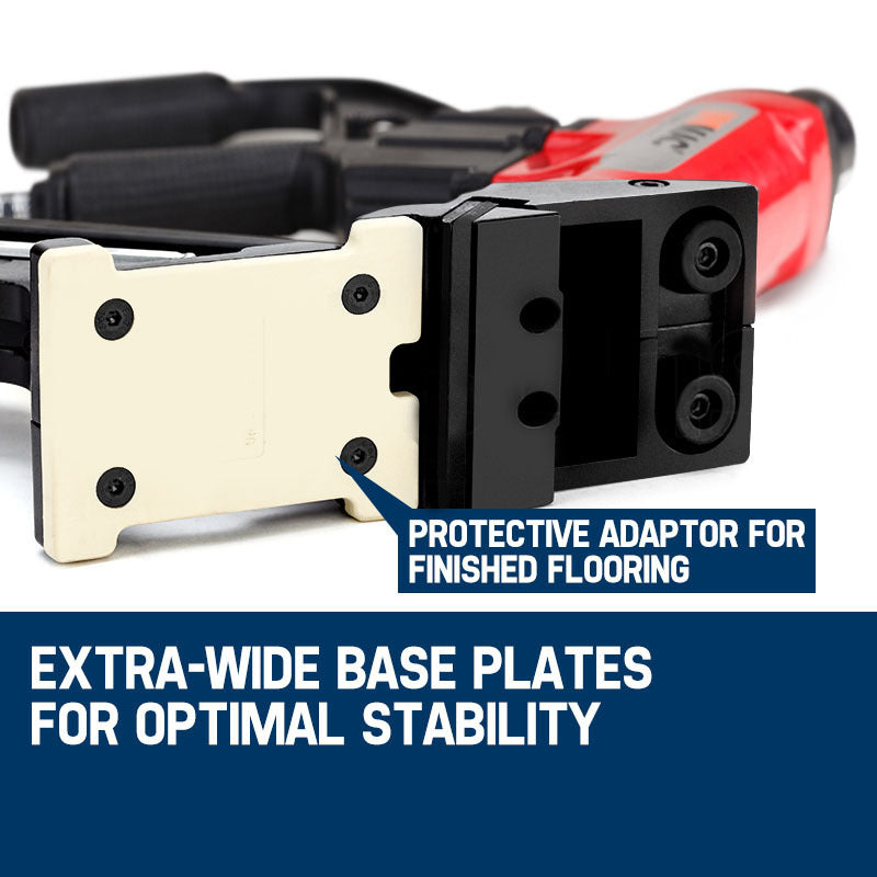 Super-lightweight and powerful, the pneumatic Unimac Nail & Staple Gun will move in step with you, effortlessly driving 37-50mm nails and 25-50mm staples into both unfinished and pre-finished hardwood flooring at 48Nm. Its ergonomic extended handle makes for a comfortable working position. And it's as easy on the floorboards as it is on your body, featuring a pre-finished floorboard adaptor foot for truly polished results. It has all the makings of a great performance.