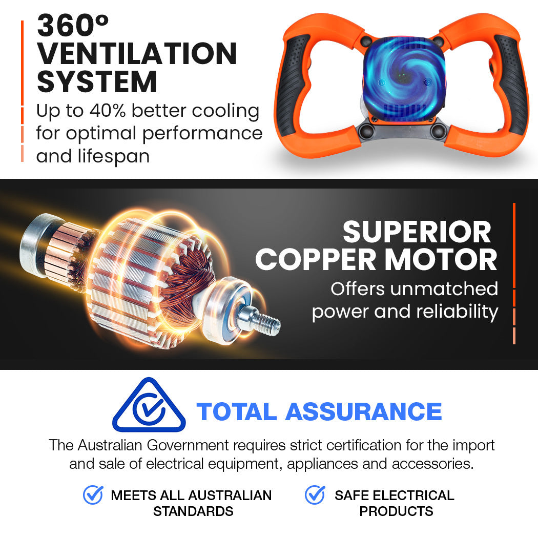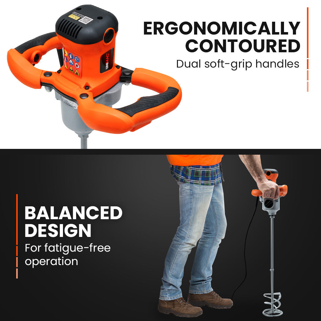 The lightweight design at just 6kg and the ergonomic dual soft grip handle design gives you complete control of the mixing process.