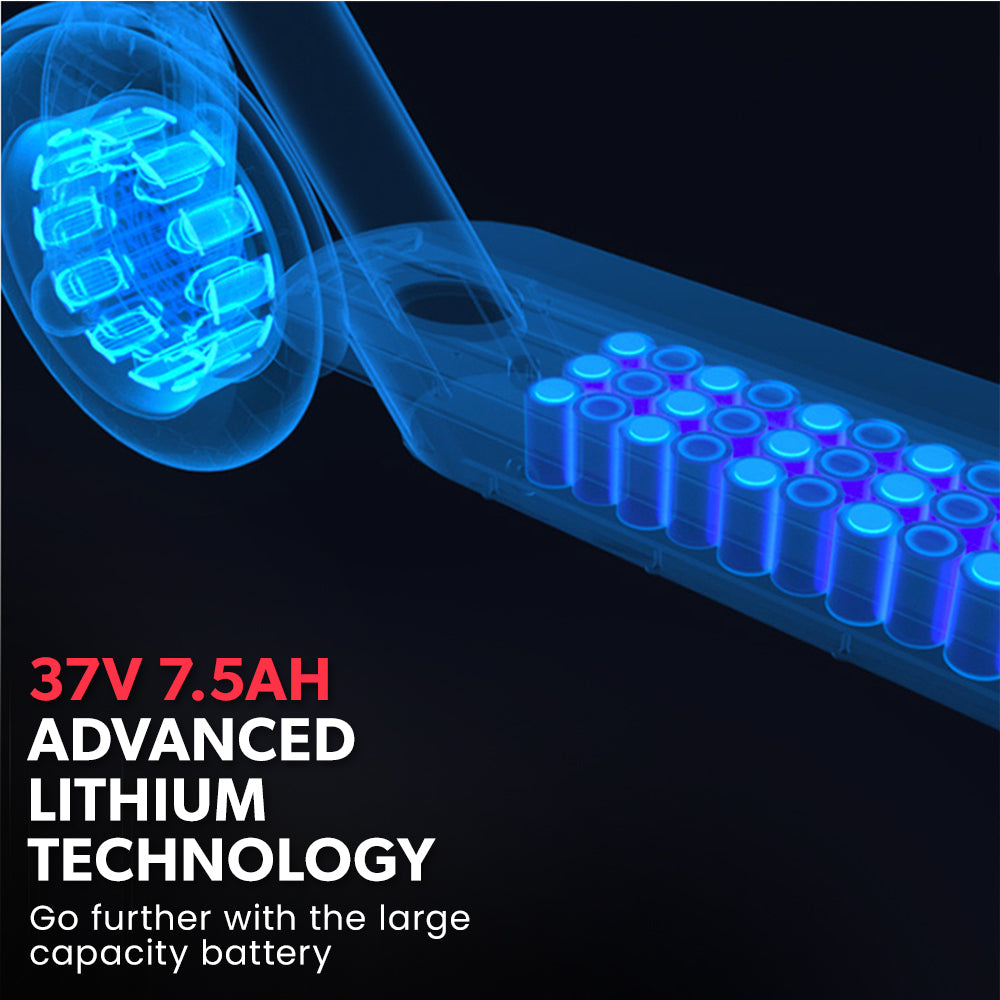 The large 8.5-inch tyres with internal honeycomb technology ensure a smooth ride, predictable handling and the benefit of never risking a puncture or requiring refilling with air!