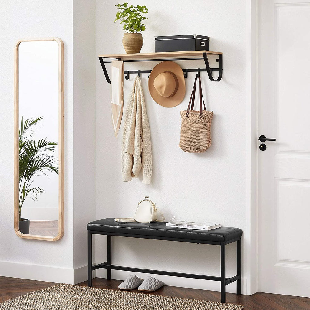 VASAGLE Dining Table Bench with PU Leather Padded Seat Steel Frame Black