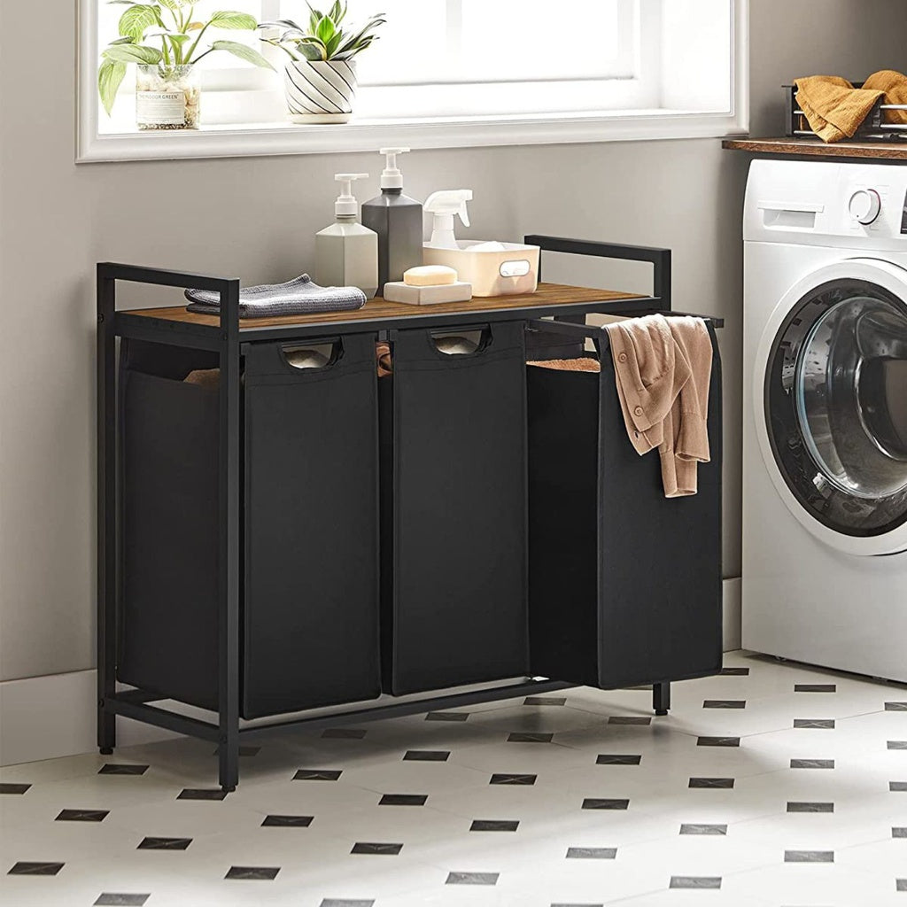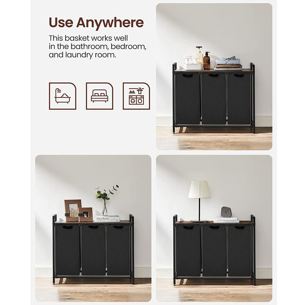 VASAGLE Laundry Hamper with 3 Bags Rustic Brown and Black BLH301B01 FEATURES 3 Bags, 1 Shelf: So much storage space!... Read more