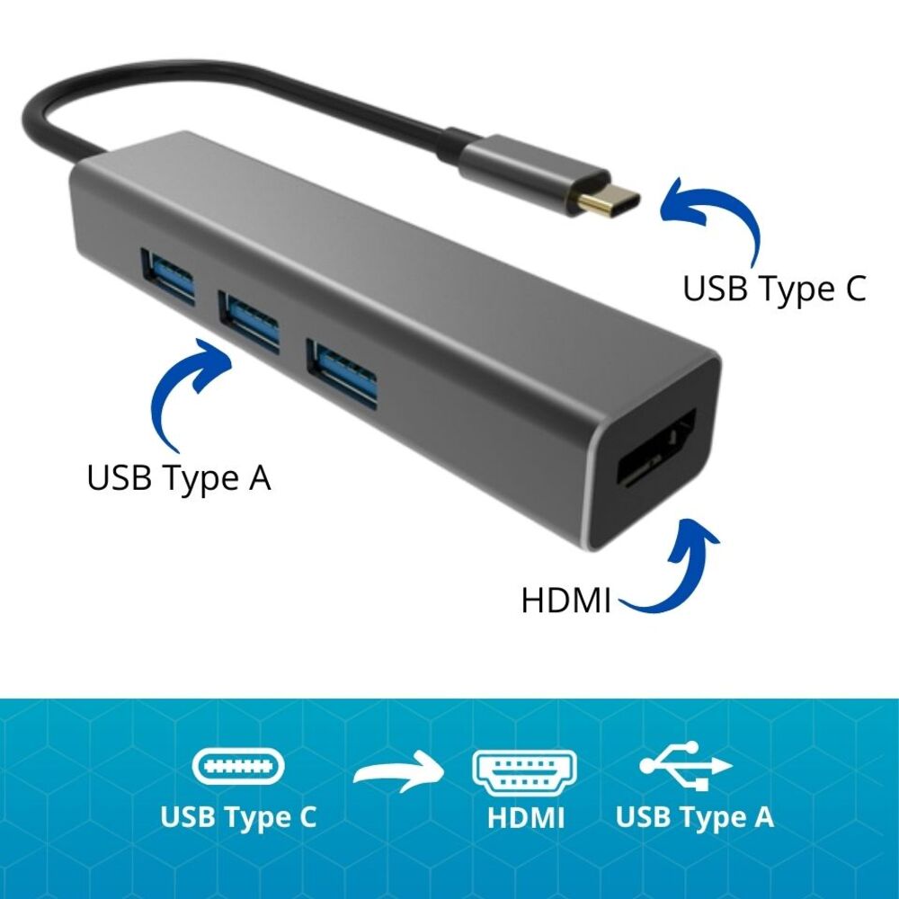 VCOM USB Type C to USB3.0*3+HDMI 4 in 1 Hub (Aluminium Shell) - DH318
