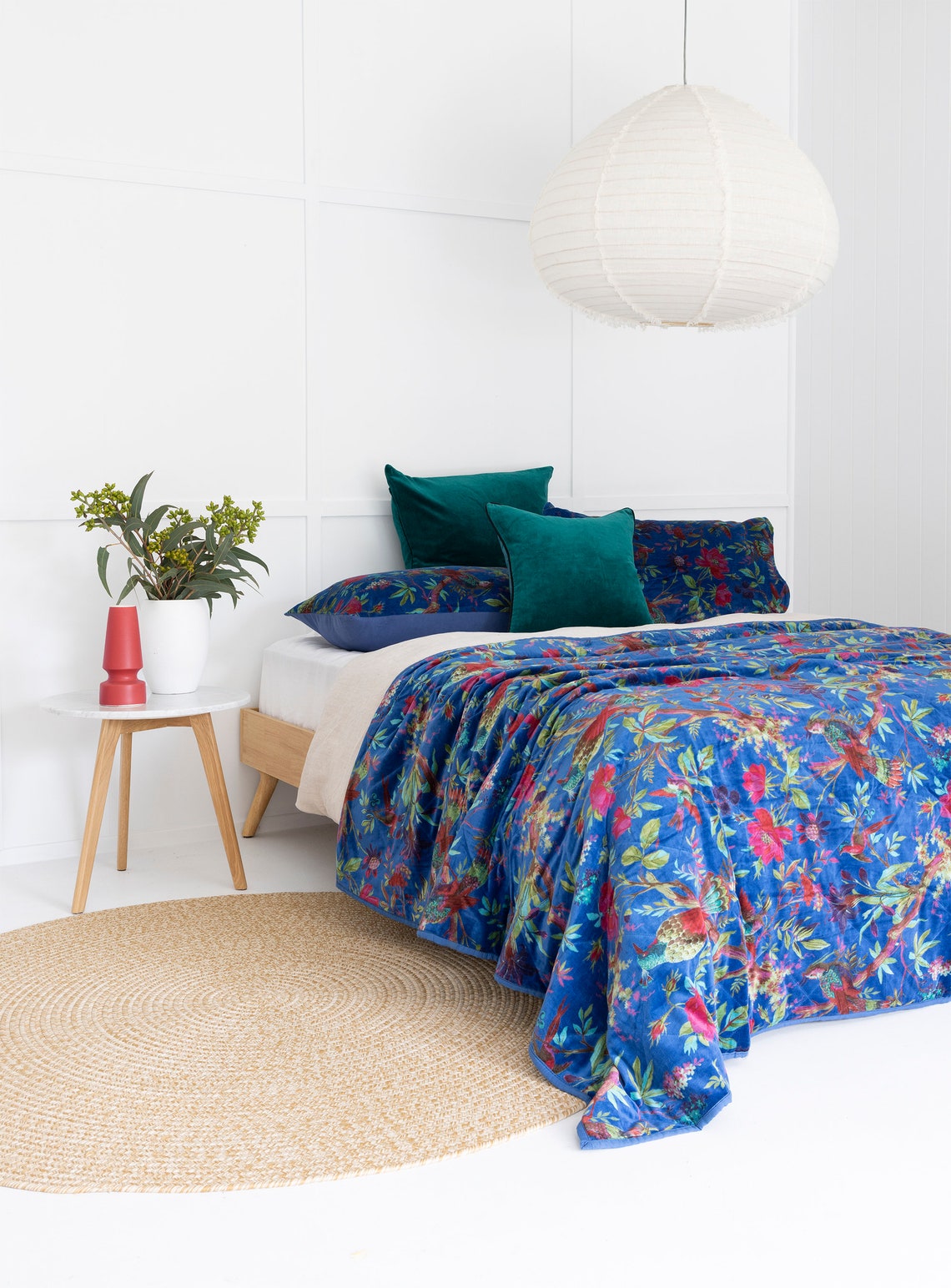 Velvet Frida Kantha Quilt Cotton Quilt Patchwork Quilt Handamade Floral Quilt Comforter Bedspread Blanket -Bird of Paradise Navy - Queen