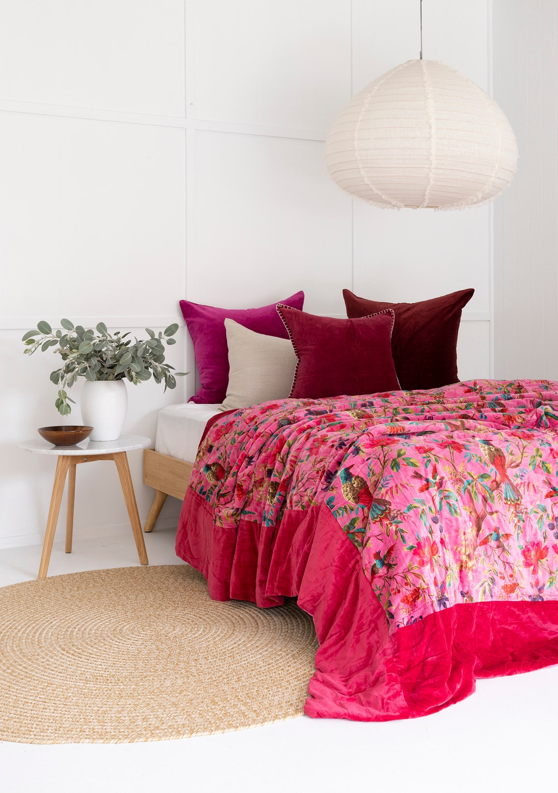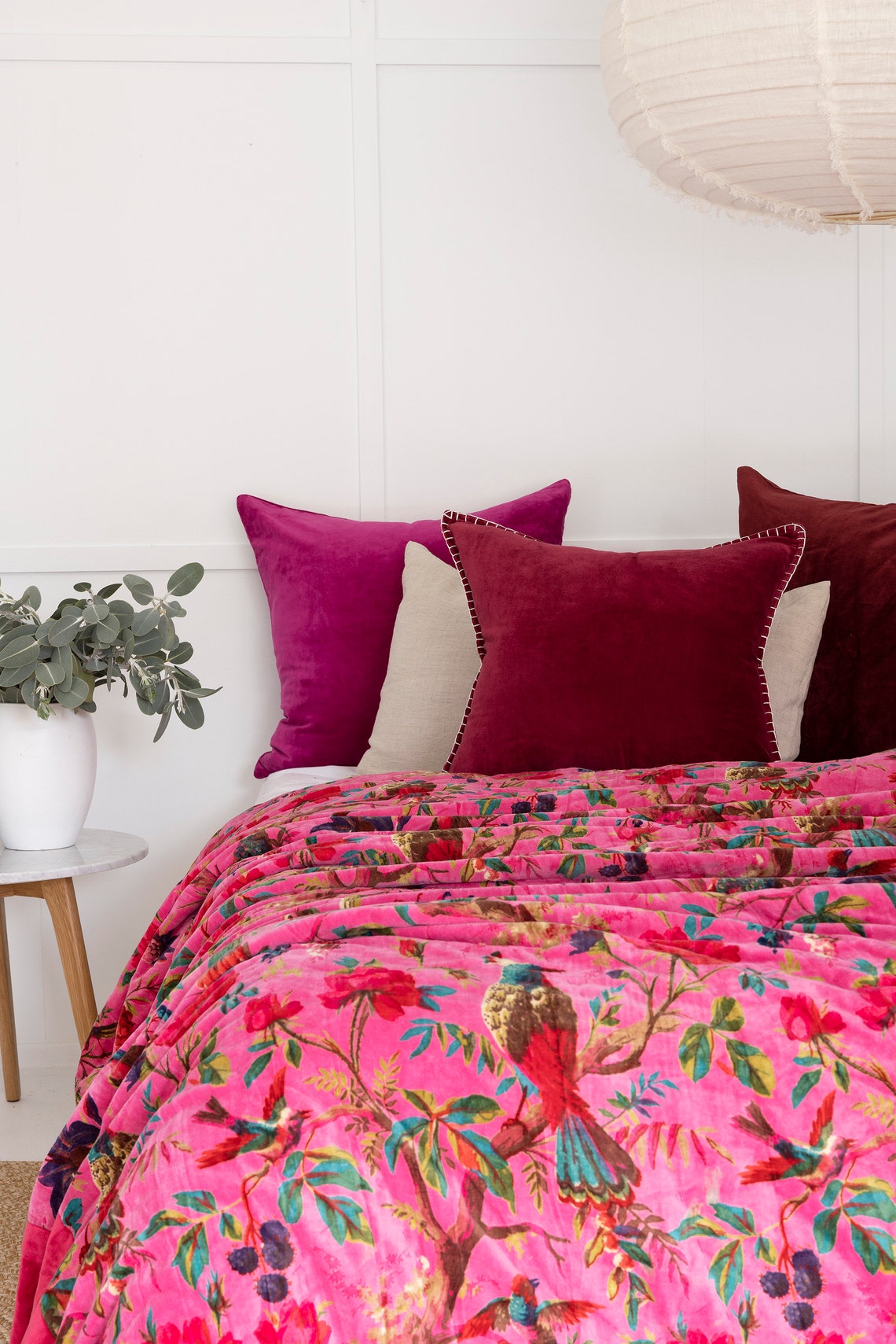 Velvet Frida Kantha Quilt Cotton Quilt Patchwork Quilt Handamade Floral Quilt Comforter Bedspread Blanket -Bird of Paradise Pink - Queen