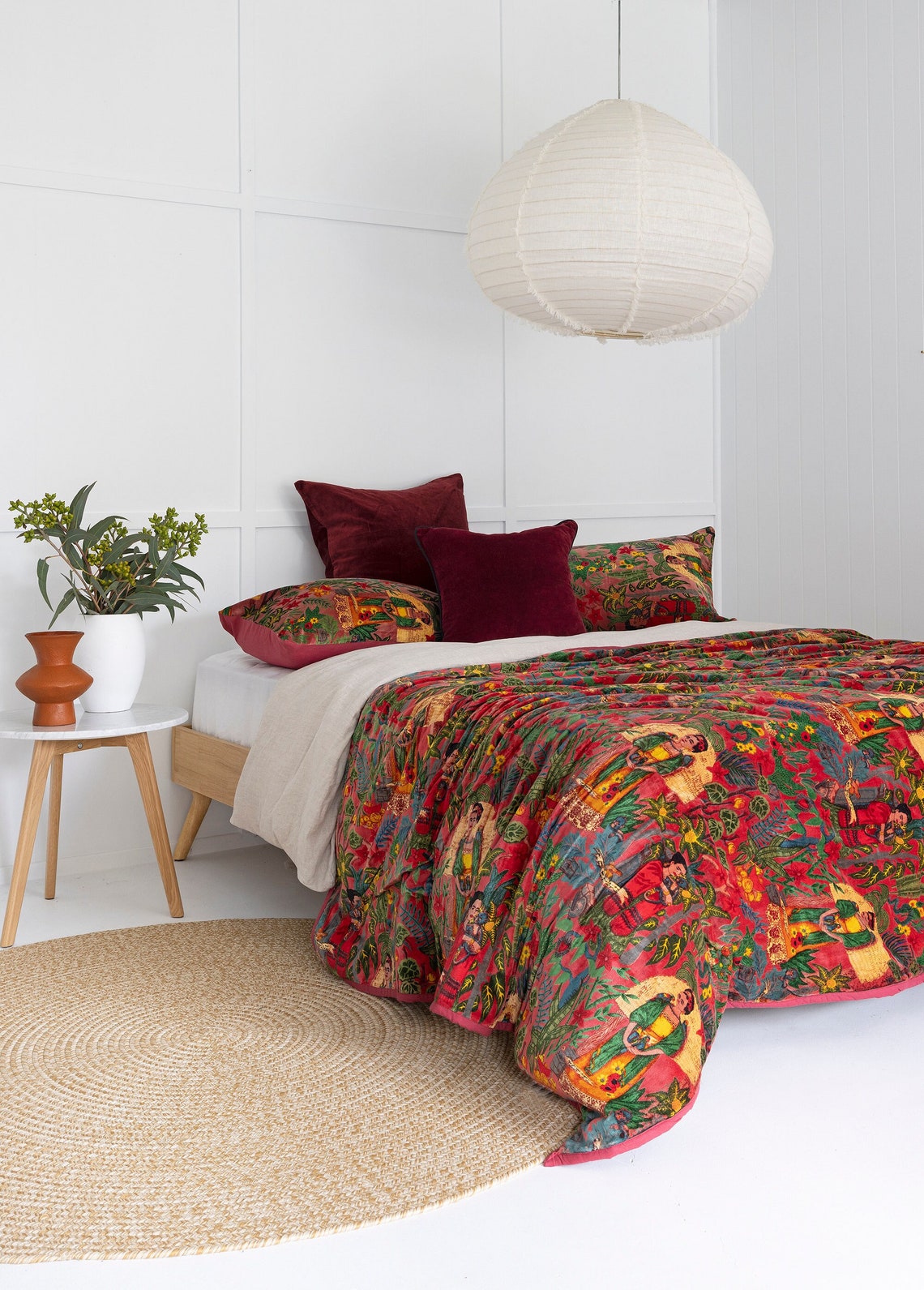 Velvet Frida Kantha Quilt Cotton Quilt Patchwork Quilt Handamade Floral Quilt Comforter Bedspread Blanket - Frida Red - King