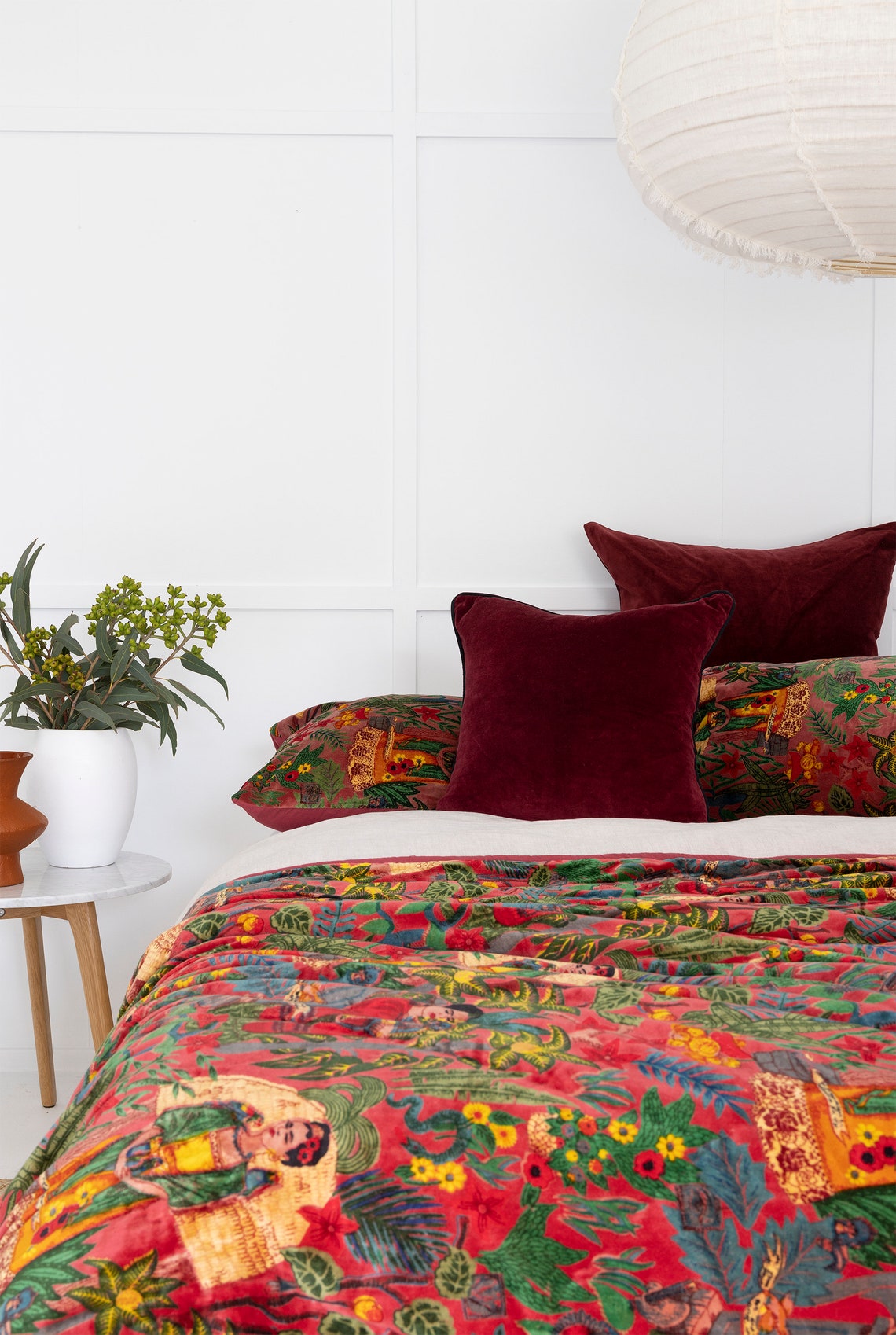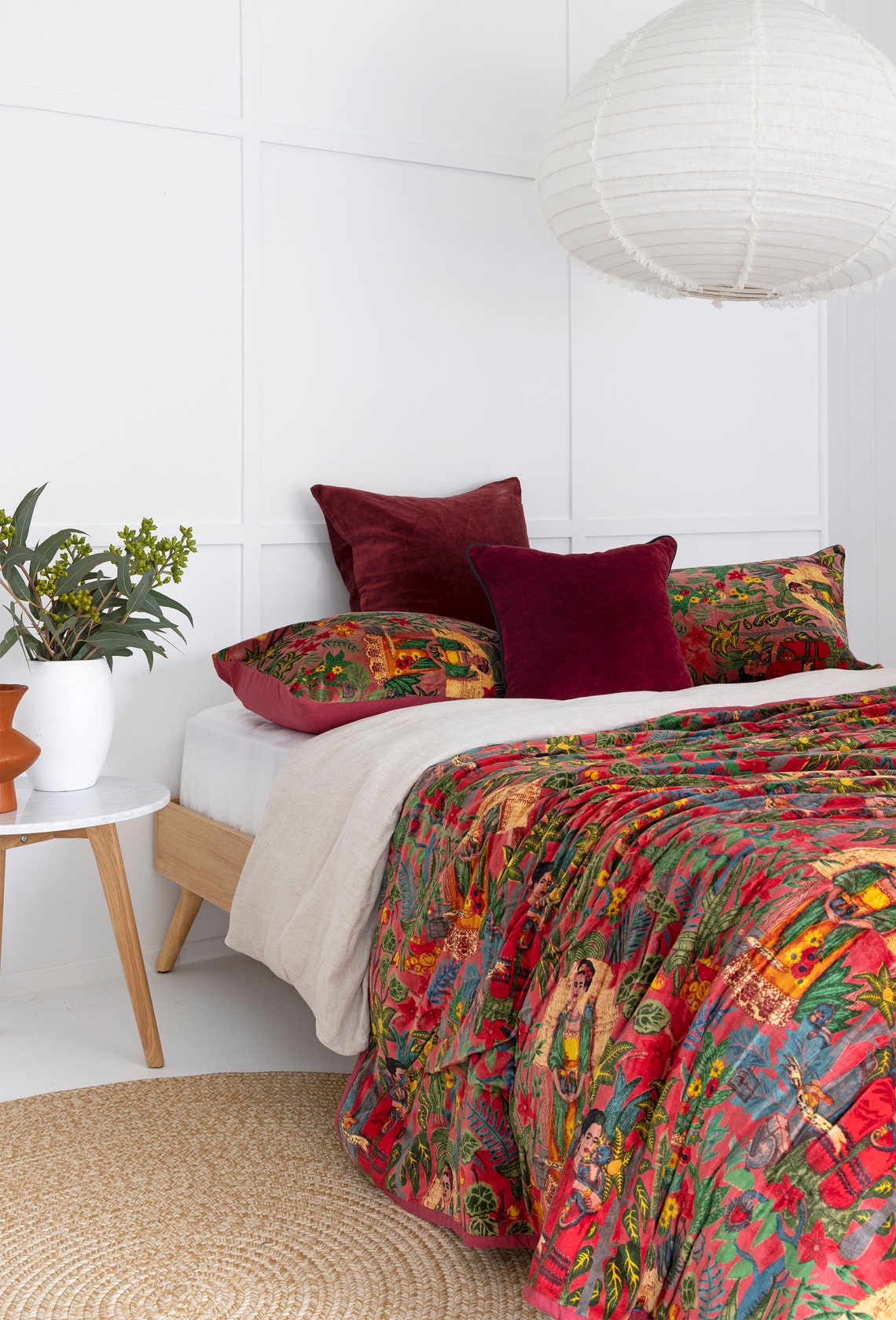 Velvet Frida Kantha Quilt Cotton Quilt Patchwork Quilt Handamade Floral Quilt Comforter Bedspread Blanket - Frida Red - Queen