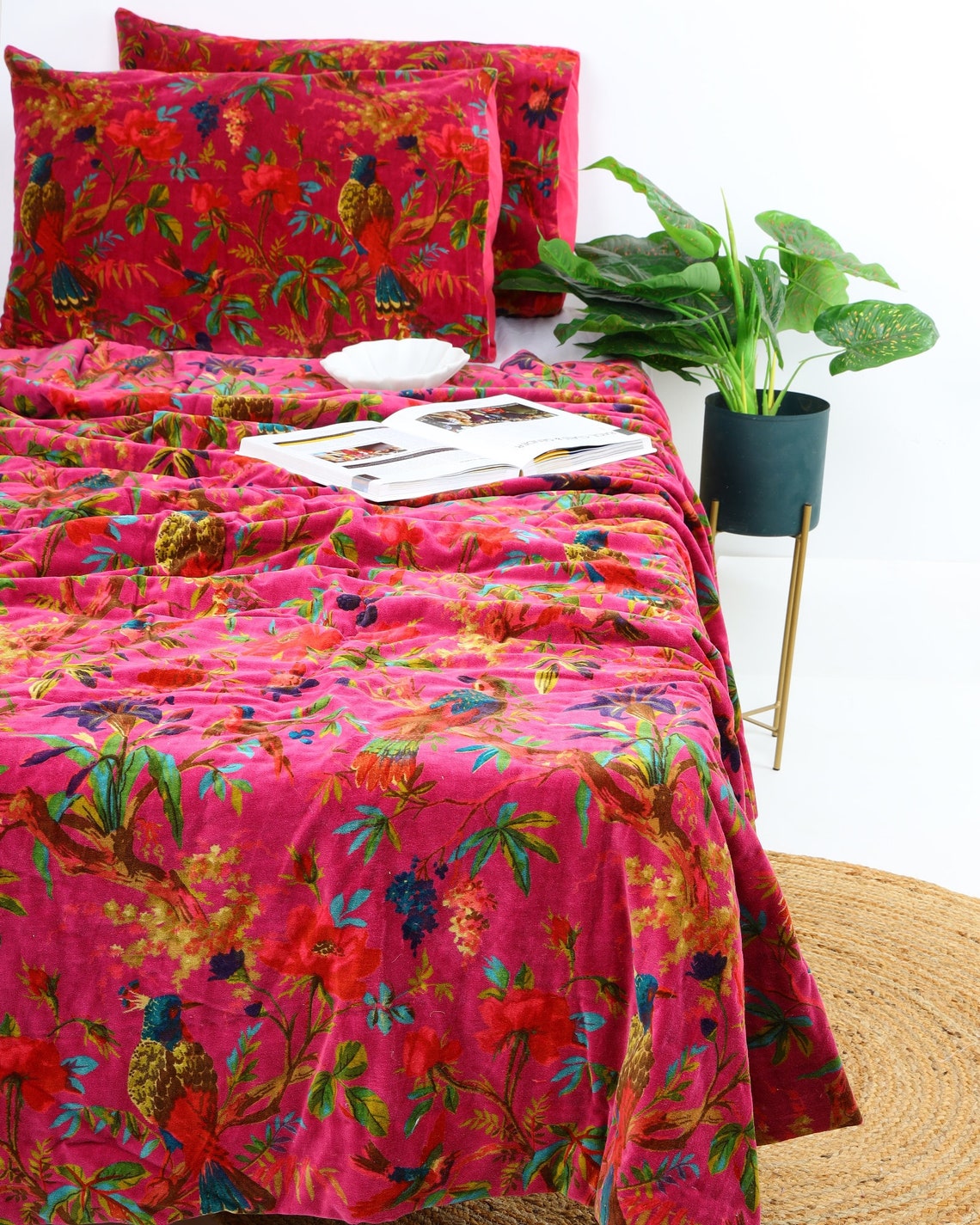 This soft plush velvet quilt reverses to equally soft cotton fabric. The light weight quilt is precisely hand quilted giving each quilt a unique texture and tonal look. Reverses to plain cotton fabric at the back. Each quilt is pre-washed for a natural and soft look. This cozy cotton quilt can be used as a bedspread, coverlet or blanket all year long.