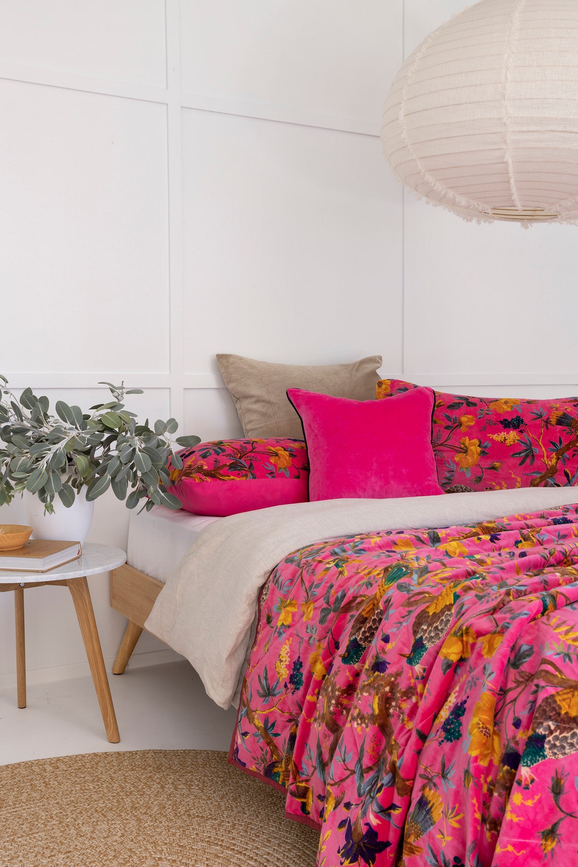 Velvet Frida Kantha Quilt Cotton Quilt Patchwork Quilt Handamade Red Velvet Floral Quilt Comforter Bedspread Blanket - Birds of Paradise - Double