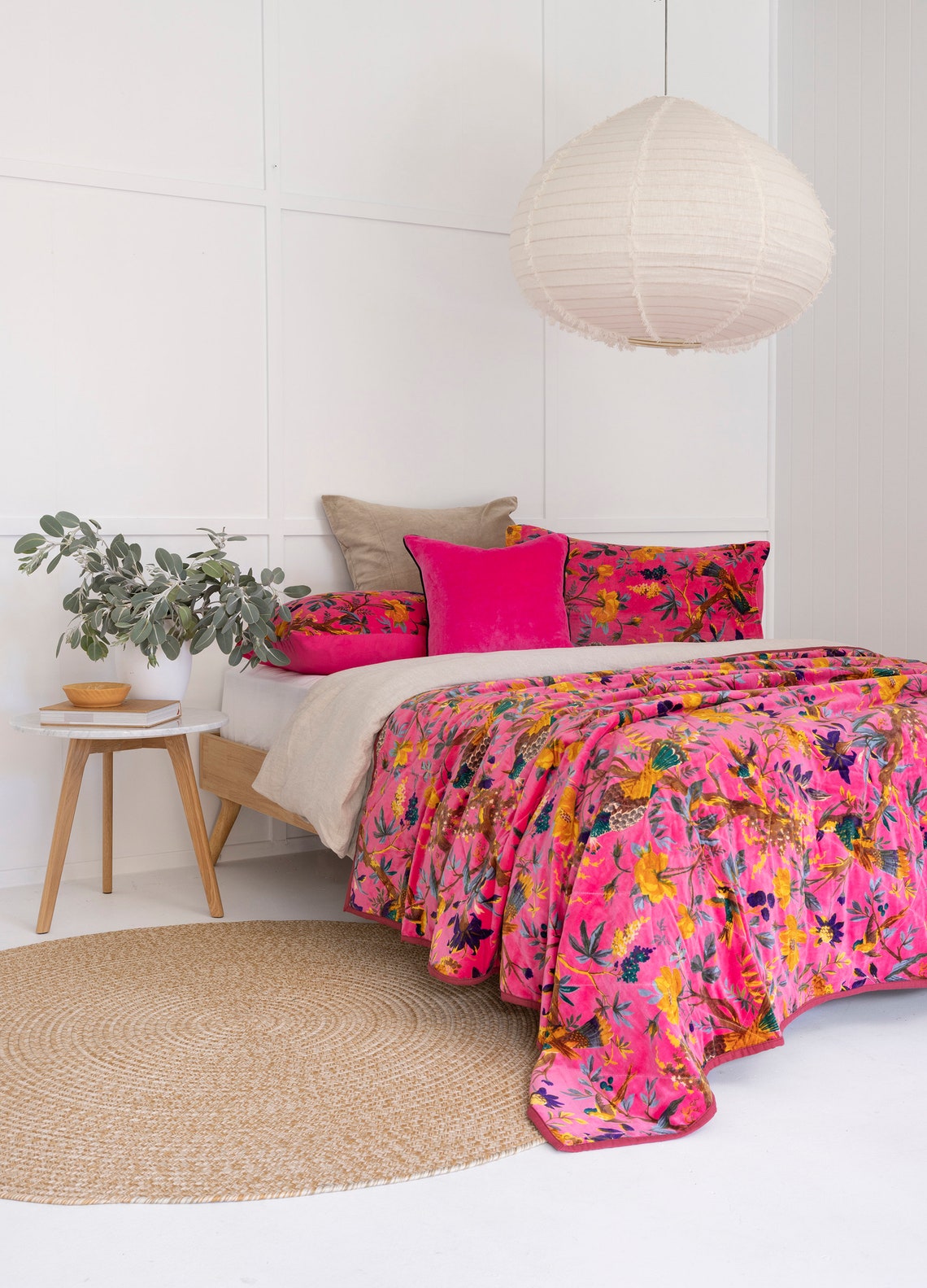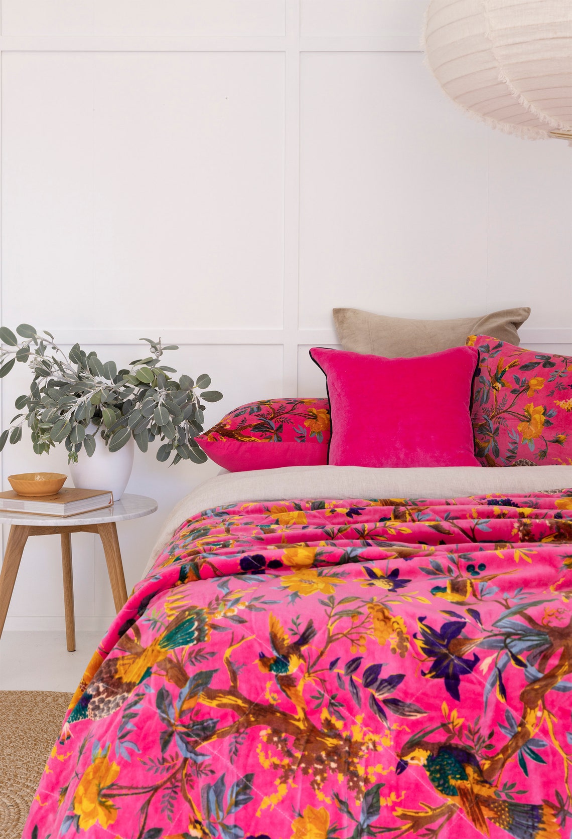 Velvet Frida Kantha Quilt Cotton Quilt Patchwork Quilt Handamade Red Velvet Floral Quilt Comforter Bedspread Blanket - Birds of Paradise - Queen