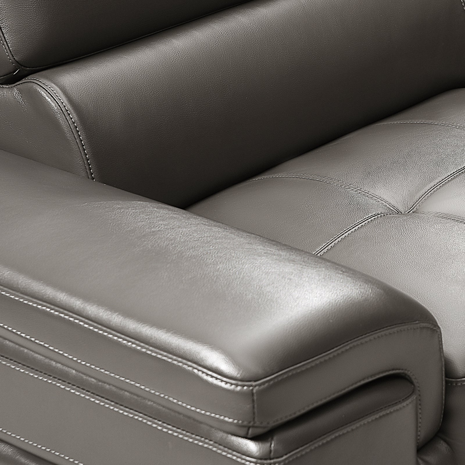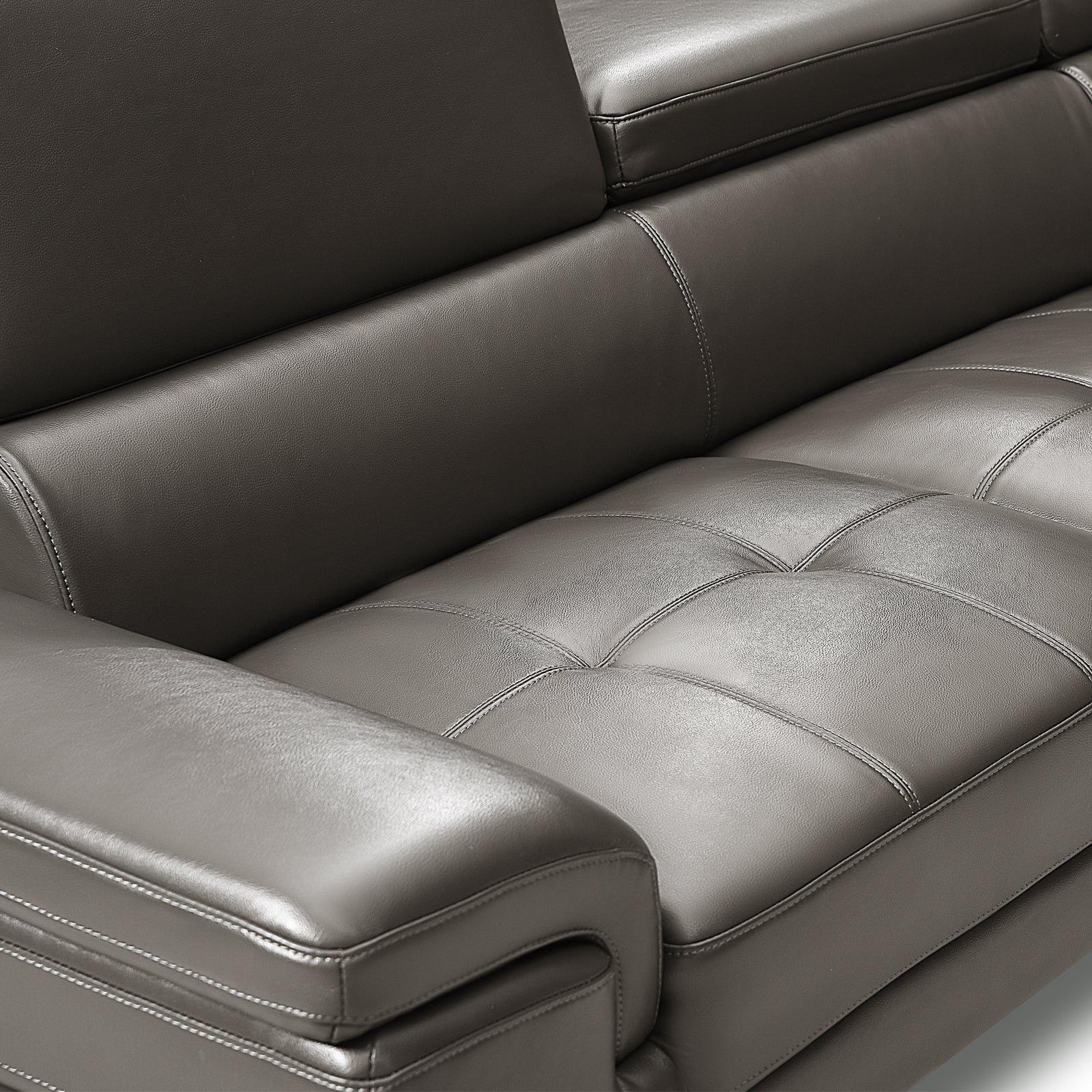 This stylish grey sofa is fully upholstered with high quality Faux leather and very comfortable foam inside it. It presents a trendy look with stylish white stitching on its quilted pillow back cushions.