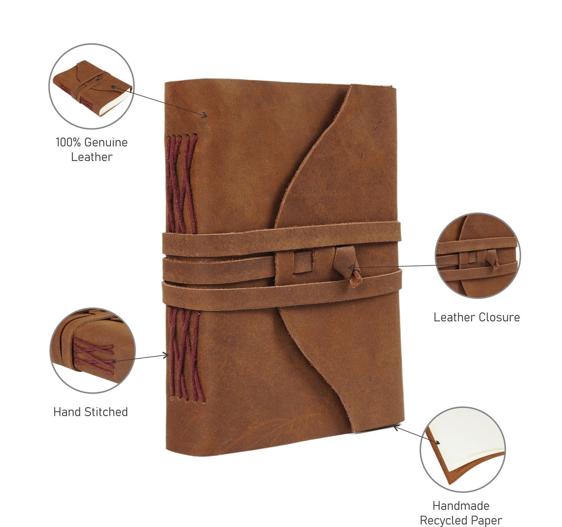 Vintage Leather Journal Recycled Paper Journal, For Notes, Notebook, Sketch book, Diary, Handmade Book,100% Recycled Rag,Tree Free Paper