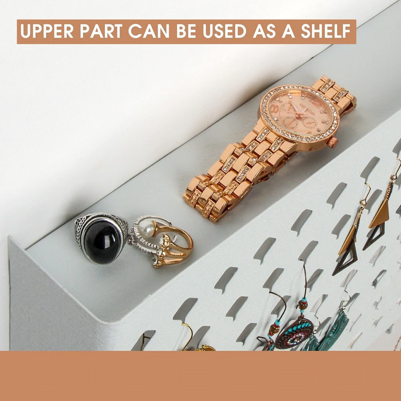 - Enough storage for earring and jewelry: With 109 holes, it can hang as many as earring you want to hang and under 19 hooks to hang bracelet, necklace perfectly. And additional top acrylic tray for any stuffs you want.