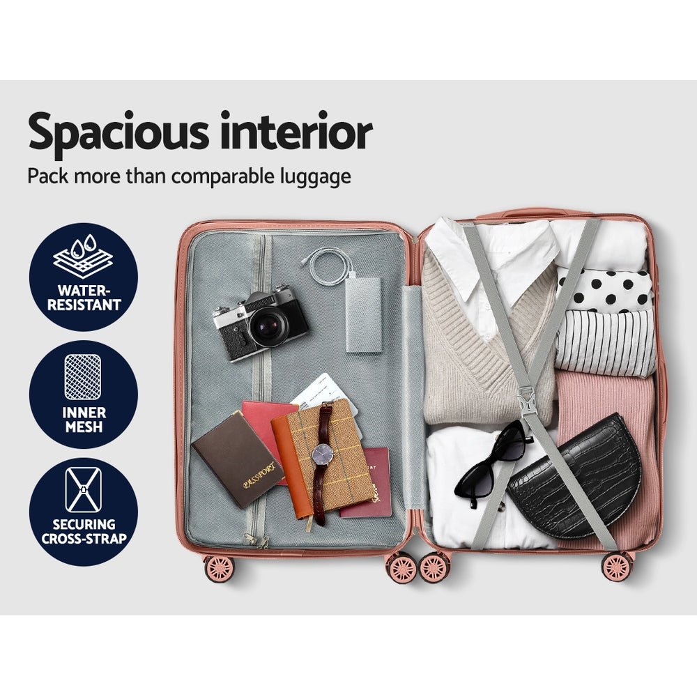 Featuring a durable hard shell, smooth dual wheels and secured TSA-approved locks, our luggage trolley set is easy to carry or manoeuvre around airports, train stations or any transport hub where getting there on time is as important as arriving with peace of mind. Super lightweight and yet strong and sturdy, the Wanscalederlite Trolley Set comprises 28" 24" and 20"sizes of which the two smaller ones can be kept in the largest luggage. Aluminium pull rod, corner guard protectors and top and side handles add to the effortless handling of each luggage.So start packing with our Wanderlite 3-piece Luggage Trolley Set and begin your wanderlust today!