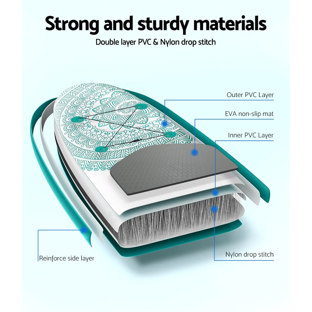 The Weisshorn Inflatable Stand Up Paddle Board is a must-have for any outdoor adventurer. Suitable for beginner paddlers and expert swimmers alike, this inflatable paddle board and kayak in one will help you explore lakes, rivers and the open water easily and within minutes. The board is made from strong, UV-resistant double-layered PVC and nylon drop stitch, as well as a reinforced side layer that resists impact. Other key features include an elastic bungee cord to hold down your belongings, a non-slip foot pad for stability, an ankle leash and a tri-fin design with central removable fin. Unbelievably lightweight and easy to carry, the paddle board is fully inflated within 5-10 minutes and has a 150kg weight capacity. Finally, an adjustable kayak seat and portable, detachable, 3-piece aluminium paddle so you can travel the waves your way. Includes a backpack, pump and bonus repair kit, so you're instantly ready to hit the water. A great way to stay fit over summer, you'll have so much fun in the sun with the Weisshorn Inflatable Stand Up Paddle Board.