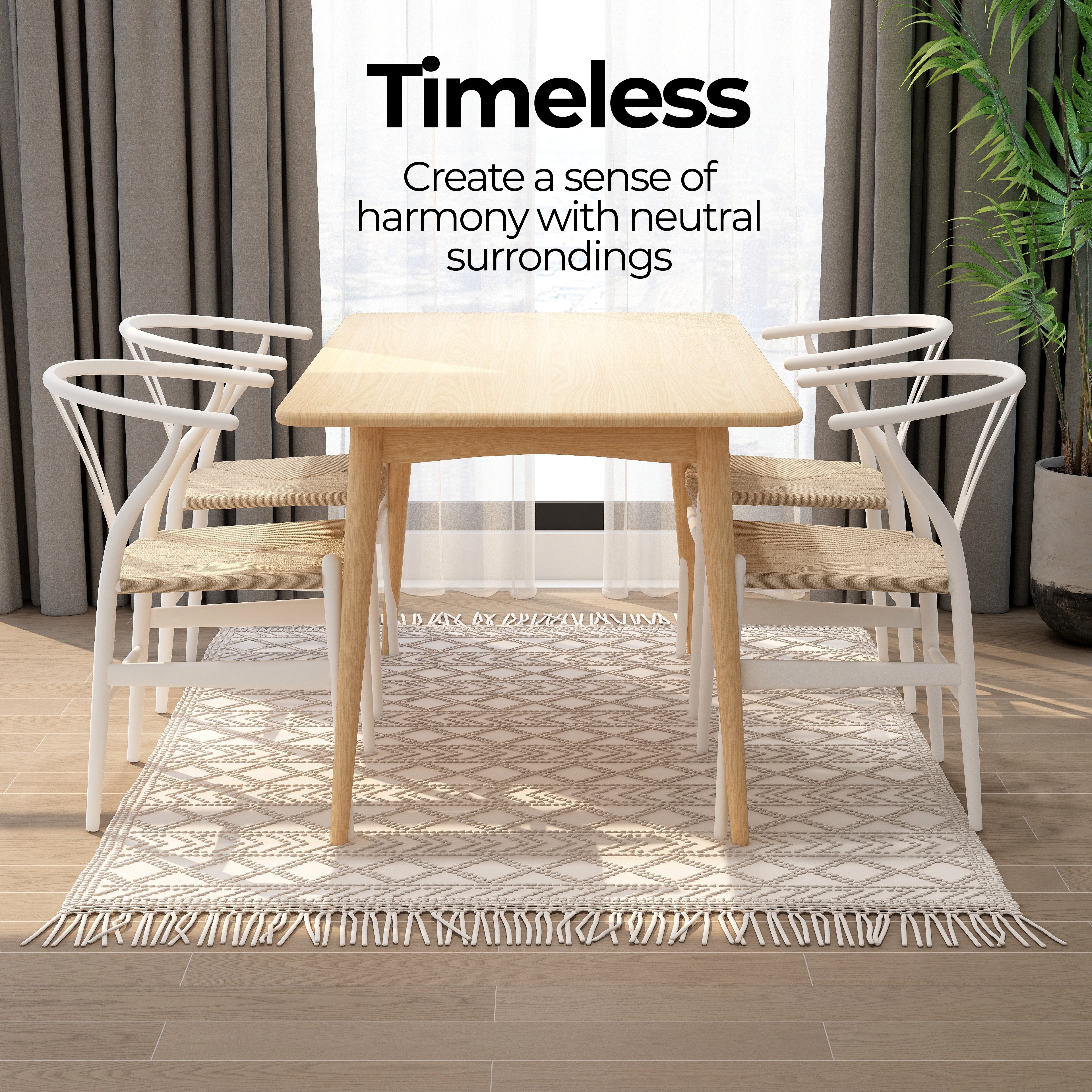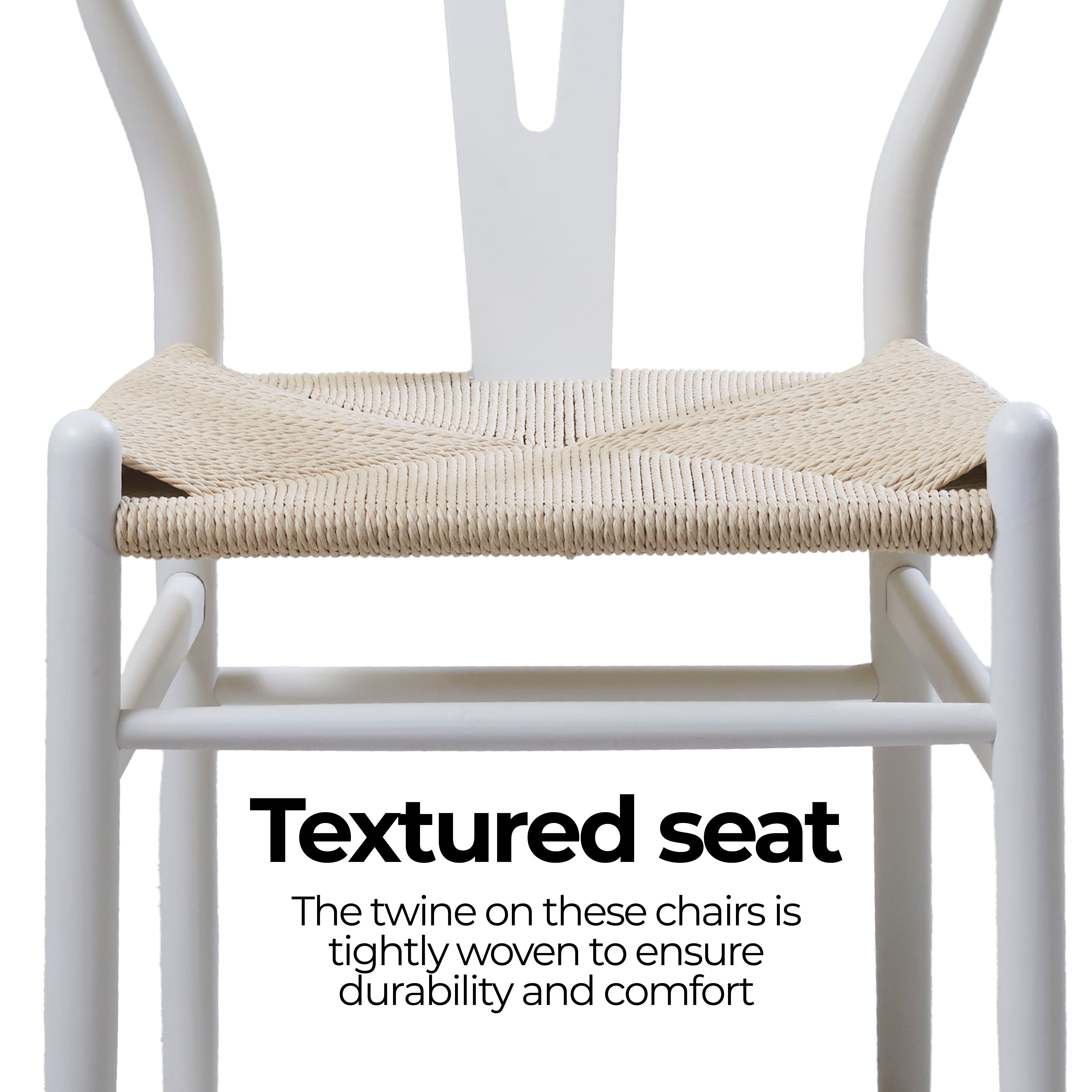 The Hans Wegner Replica Wishbone Chair boasts a sturdy frame made from high-quality beech wood, which not only provides exceptional durability but also adds a touch of natural warmth and charm to your space. The beech wood frame is expertly crafted and finished, highlighting the intricate wood grain patterns that make each chair unique & the ergonomic design of the seat ensures a comfortable sitting experience, making it an excellent choice for long dinners or extended work sessions. The comfortable seat is meticulously woven from premium twine, creating a supportive and cozy seating experience. The tight weave of the twine offers excellent weight distribution and breathability, ensuring you can enjoy hours of comfortable sitting without any discomfort.