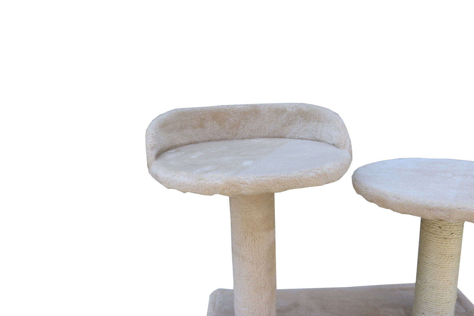 The cat tree comes with 2 bed cubes and a few platforms to provide some shelter. The tubes are wrapped with sisal ropes for your pets to scratch and play with. The sturdy base prevents any swaying so it is safe on any flat surface so you do not have to worry about injury to your cat. The stylish cat tree will perfectly blend in with your decor.